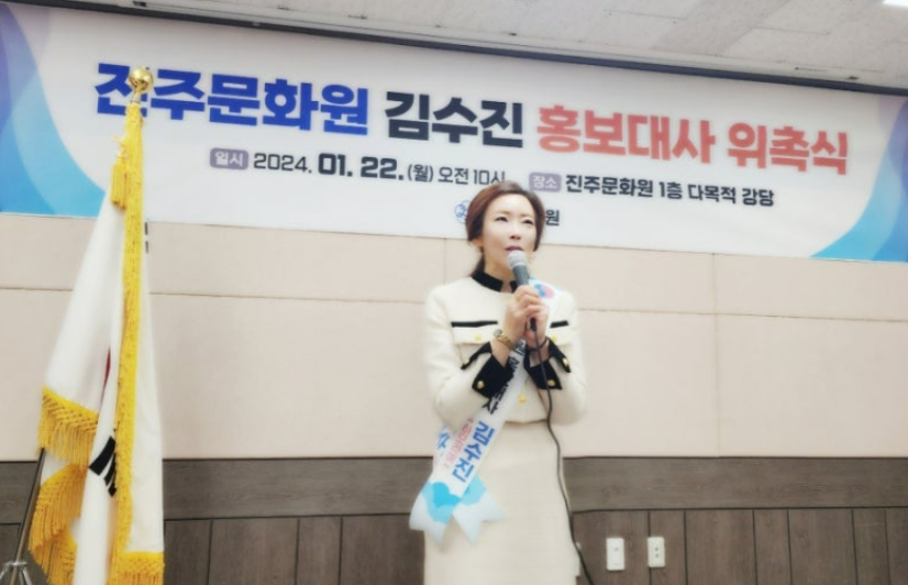 김수진 씨는 경남 진주 지역에서 아나운서, 가수, 그리고 홍보대사로 알려진 인물입니다.